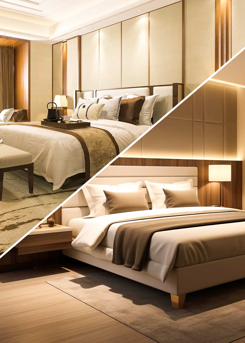 Whether you desire a cozy, minimalist retreat, a modern and sleek design, or a classic and elegant ambiance, our bedroom interior design services have got you covered. We are passionate about every detail, from furniture placement to color palettes, lighting, and accessories.